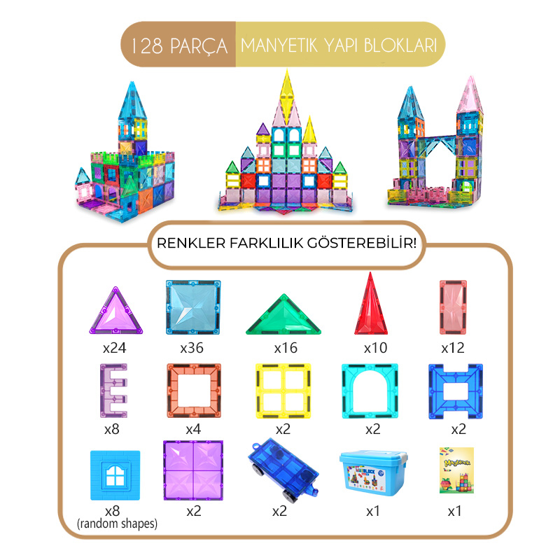 Çocuğunuzun canlı renklere sahip manyetik yapı taşlarını benzersiz desenlerle birleştirerek, hayal ettikleri her şeyi inşa edebilir.Gökdelen kalelerden hızlı arabalara ve soyut heykellere, MagBlocks ile çocuğunuzun yaratıcı ve yapıcı yeteneklerinin sınırsız potansiyelini ortaya çıkarın! MagBlocks Manyetik bloklarımız çocukların bilim, matematik ve mühendislik yapmak ve teknolojiyi verimli kullanmak için gerekli STEM becerilerini geliştirmelerine yardımcı olur.